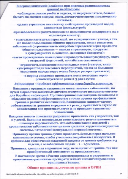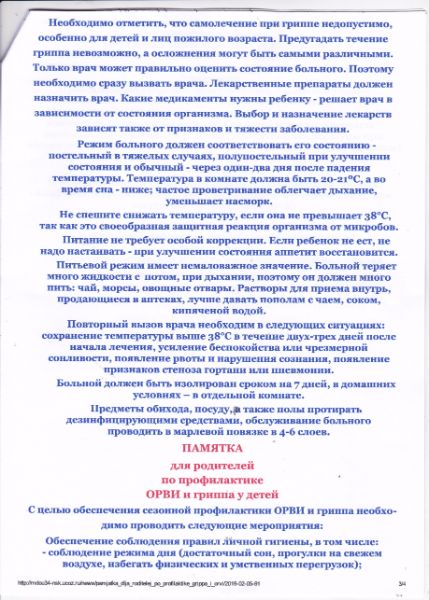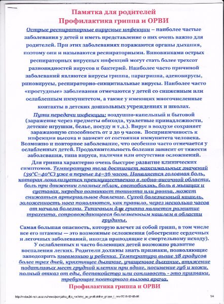 Уважаемые родители! Публикуем памятку от гриппа и ОРВИ