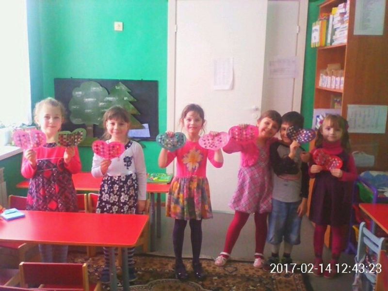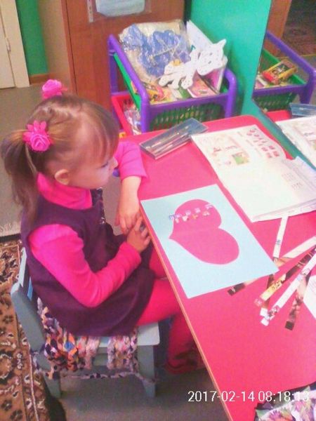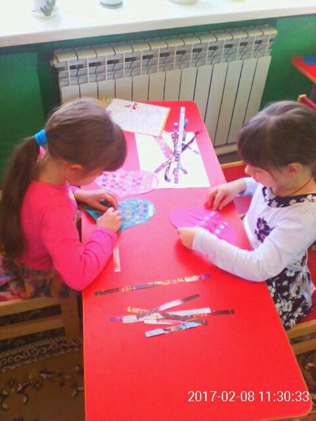 На логопункте учитель - логопед Королёва Оксана Валерьевна вместе с детьми «плели» подарки в виде сердечек для своих близких и друзей из бумажных полосок. Дети с удовольствием выполняли поделки.