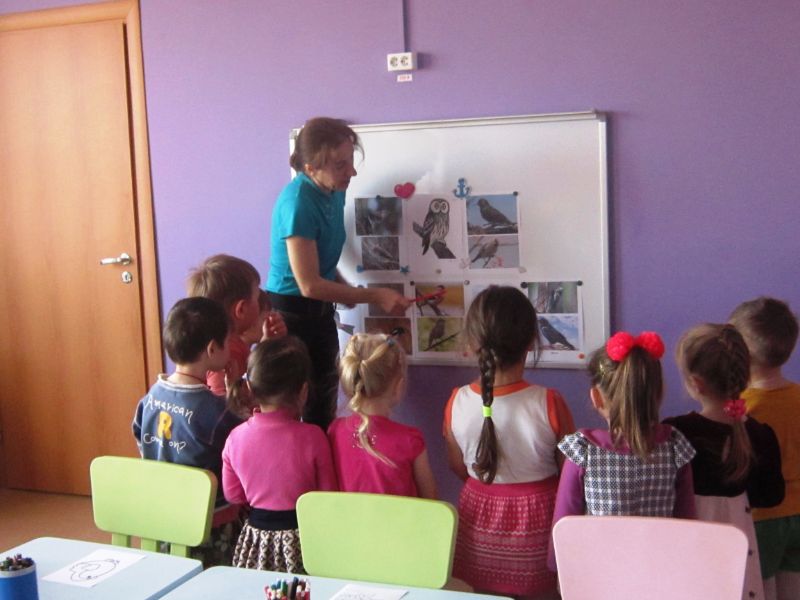 Задачи: формировать реалистичные представления о природе, расширять у детей знания об особенностях внешнего вида, жизненных проявлениях, повадках птиц и приспособлении их к среде обитания; активизировать внимание и память детей.