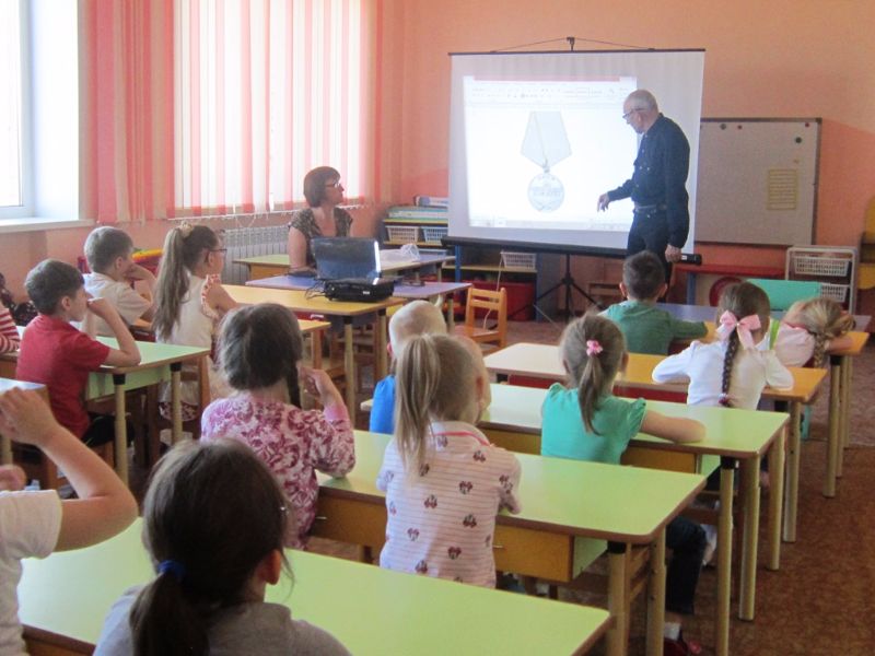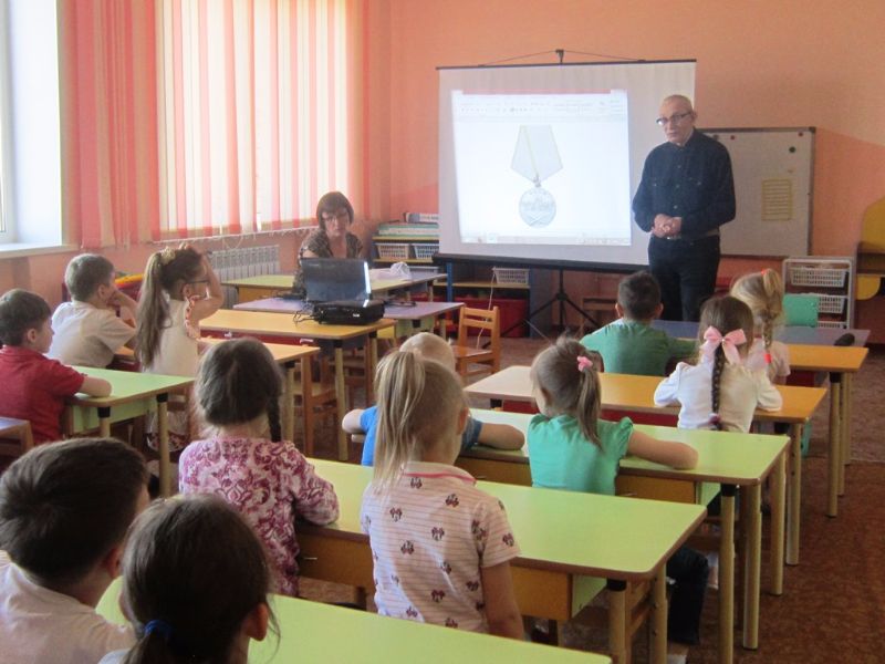 2 мая в гости к детям старшей группы приходил очевидец страшных военных событий Великой Отечественной войны, депутат поселкового собрания Пильщиков Анатолий Григорьевич. Он показал презентацию и рассказал детям о том какими орденами и медалями награждали военных во время Великой Отечественной войны.