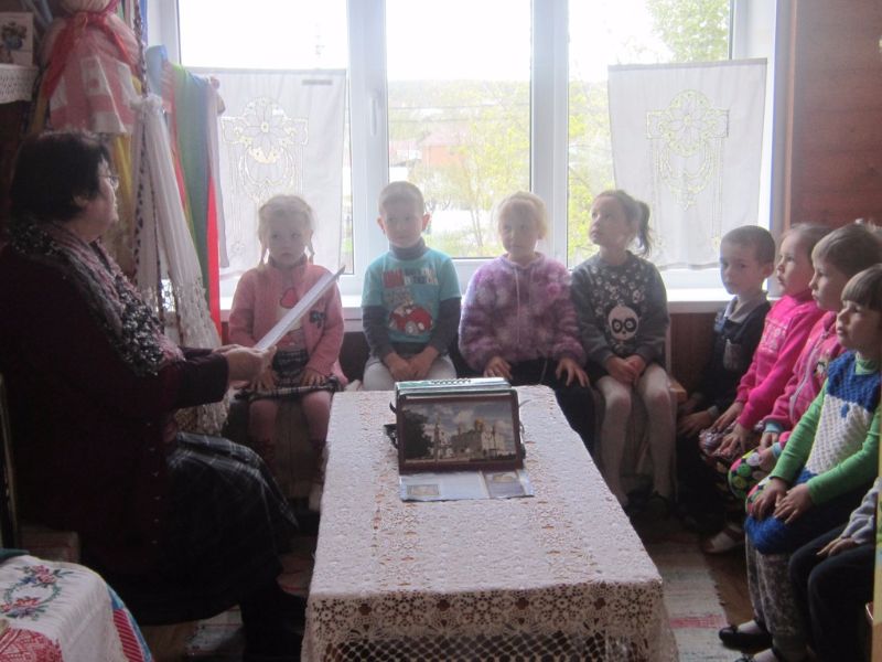 10 мая музыкальный руководитель Прохорова Галина Владимировна водила детей средней группы в наш музей и провела беседу на тему: «Победа в воздухе не вьётся, а руками достаётся»