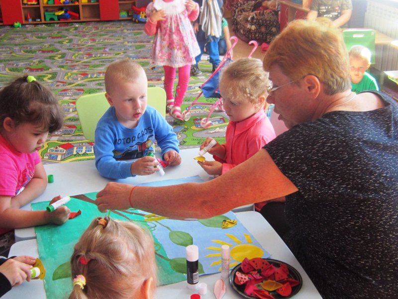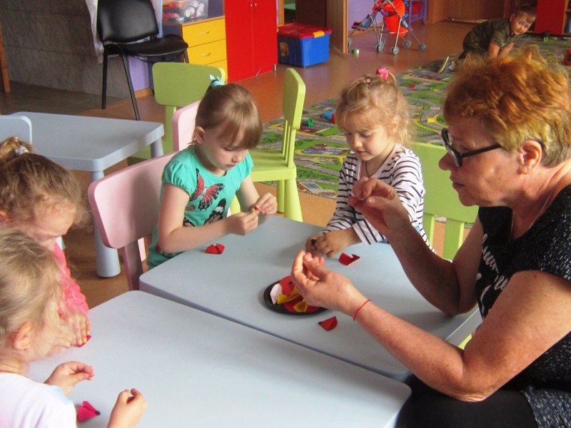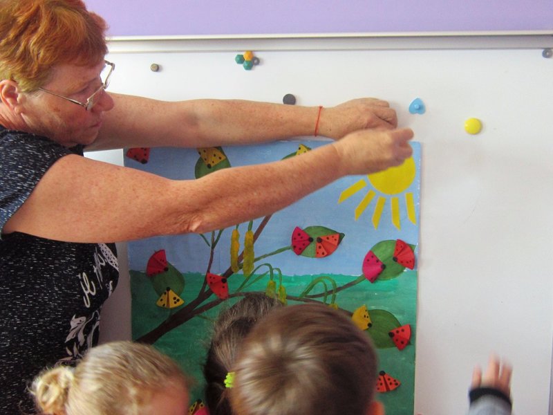 И в этот же день после сна Анна Николаевна вместе с детьми сделали объёмную аппликацию на тему: «Божьи коровки на берёзе» которая будет и зимой напоминать им о летних теплых днях.