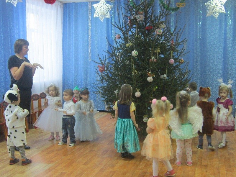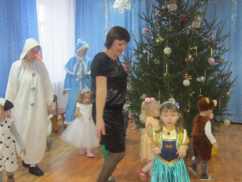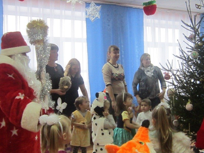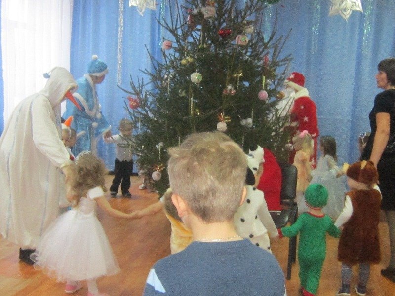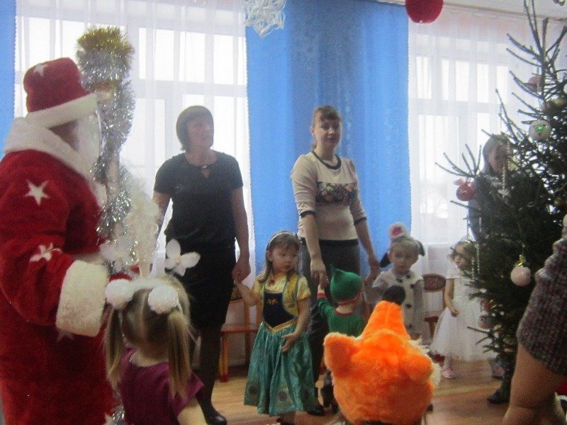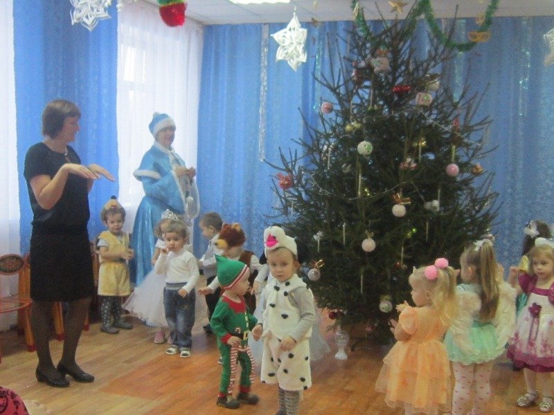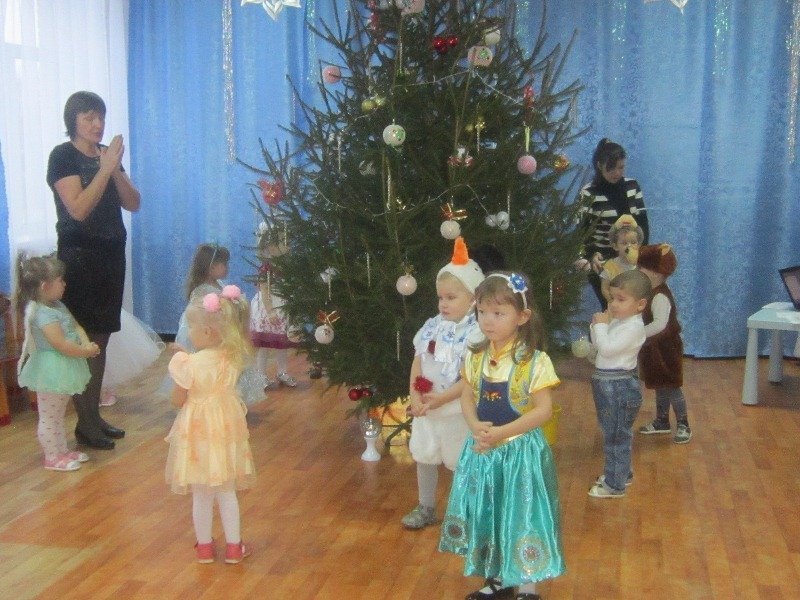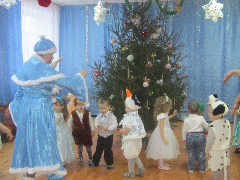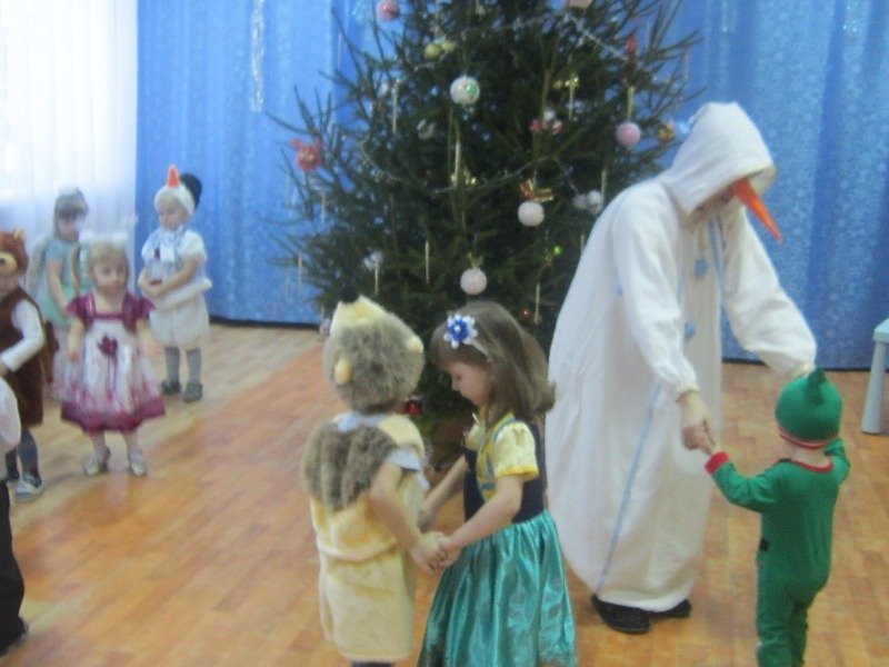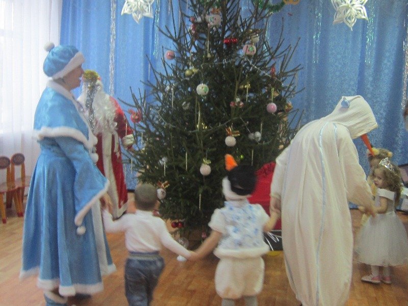 Малыши с восторгом встретили Снегурочку; поиграли с ёлочкой (когда они топали — ёлка гасла, а когда хлопали — загоралась); спели хороводную песенку «У ребяток наших», а самые смелые детишки рассказали Снегурочке и Деду Морозу стихи. Водили хороводы. Ну и кто же не любит игру в снежки? Наши ребятишки хоть и маленькие, да удаленькие, они с удовольствием играли со Снеговиком в снежки, детскому восторгу не было предела.