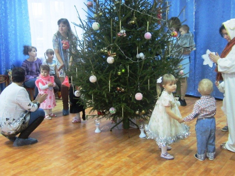 27 декабря ребятишки кратковременной группы «Росточки» впервые побывали на новогоднем утреннике.