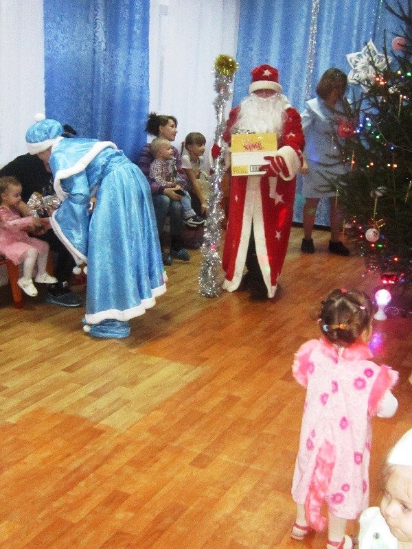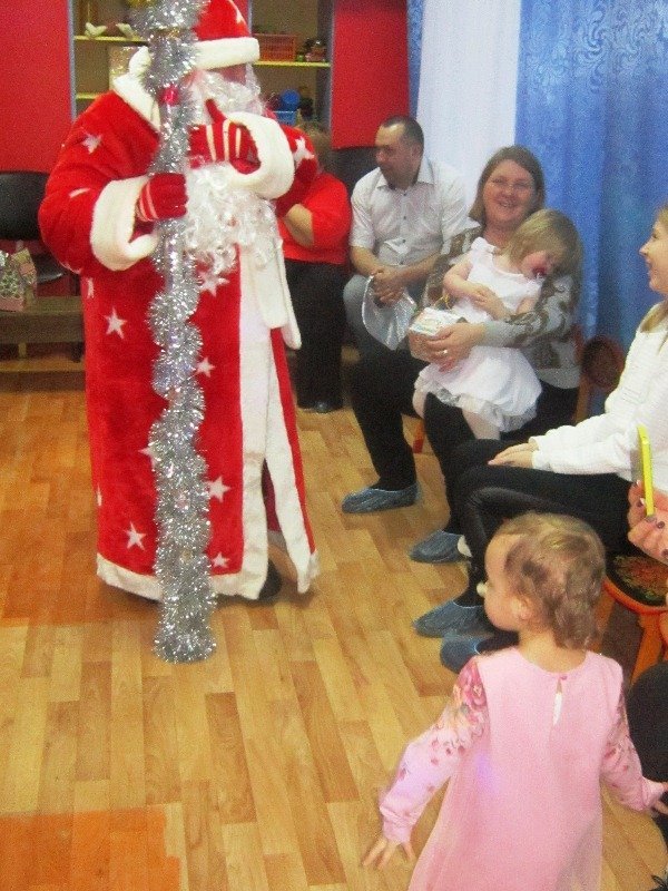 С появлением Деда Мороза праздник продолжился веселыми играми и хороводами зажигали разноцветные огоньки на ёлочке. Звучало много музыки, звонкого детского смеха. В конце утренника Дед Мороз подарил непоседам долгожданные подарки.