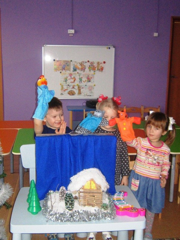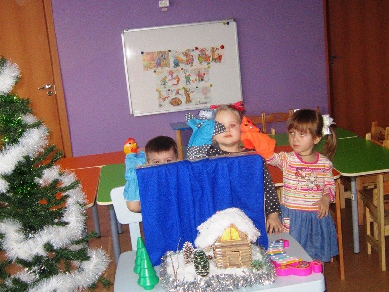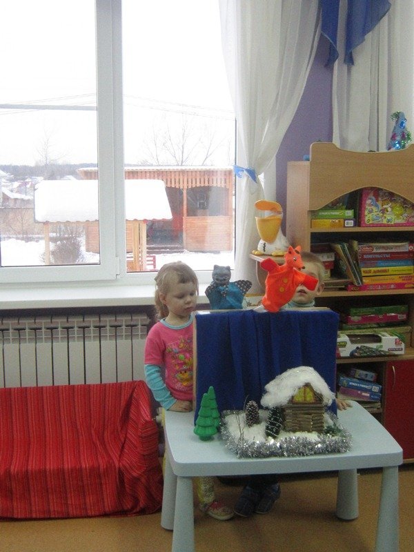 20 января воспитатель Ерёмкина Ирина Леонидовна показала детям второй младшей группы кукольный театр по сказке «Кот, петух, лиса» Потом дети попробовали сами инсценировать сказку.