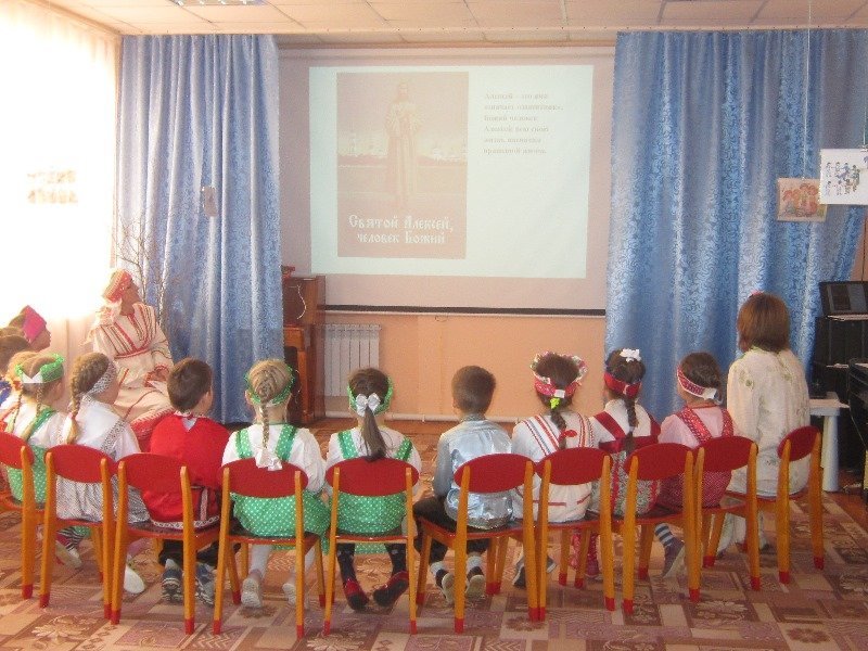 28 марта в нашем детском саду прошёл семинар для воспитателей дошкольных организаций Дзержинского района на тему: «Приобщение детей к истокам русской народной культуры». Воспитатели Калугина Лариса Леонидовна, Горюнова Ольга Ивановна и музыкальный руководитель Илюхина Ольга Николаевна провели развлечение с детьми старшей группы: квест – игра «Алексей - с гор потоки».