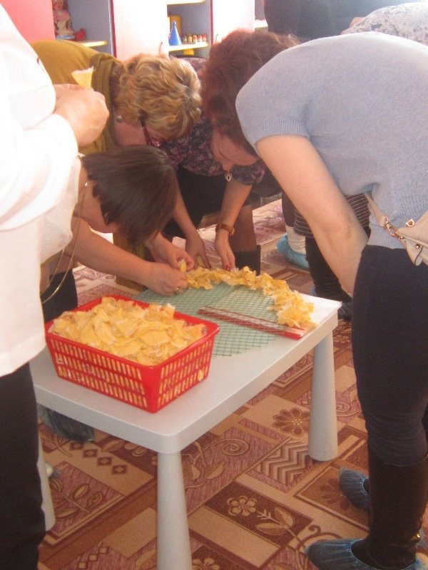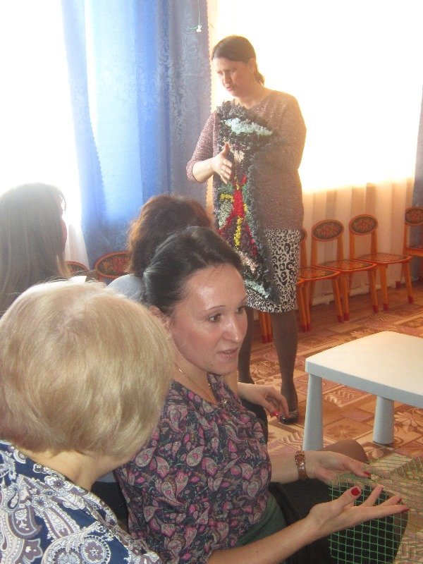 Воспитатель Золотарёва Ольга Васильевна провела мастер - класс на тему: «Забытые ремёсла». Показала как изготовить коврик из полосок ткани.