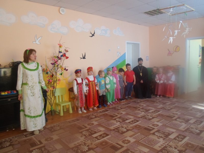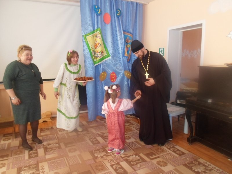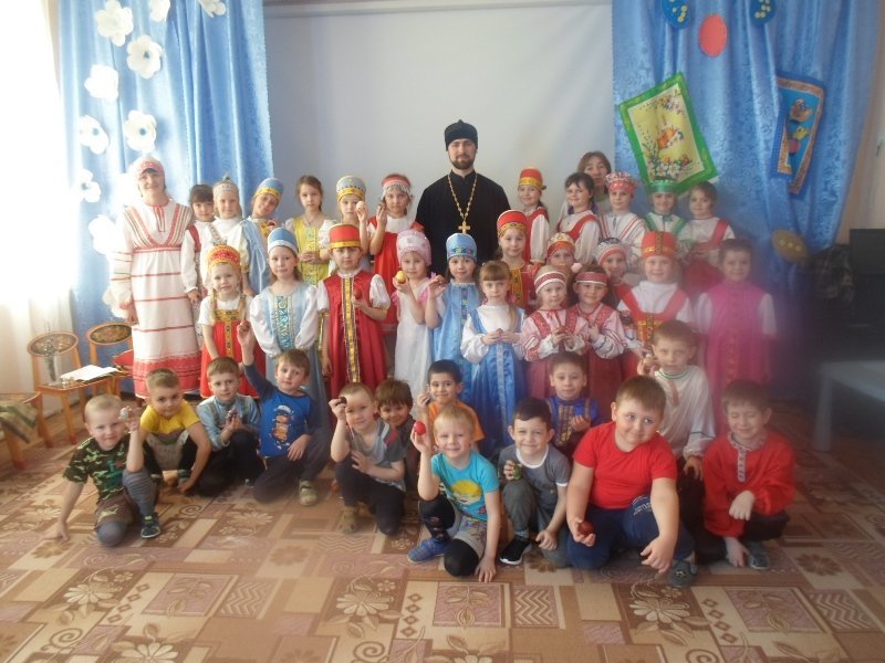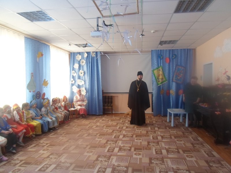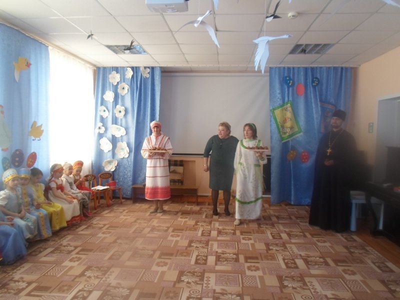 9 апреля воспитатели Калугина Лариса Леонидовна, Горюнова Ольга Ивановна и музыкальный руководитель Илюхина Ольга Николаевна показали детям старшей и средней групп презентацию посвящённую этому празднику и провели праздничный концерт. На концерт приходил настоятель храма Преображения Господня в Полотняном Заводе иерей Ярослав Клоков.