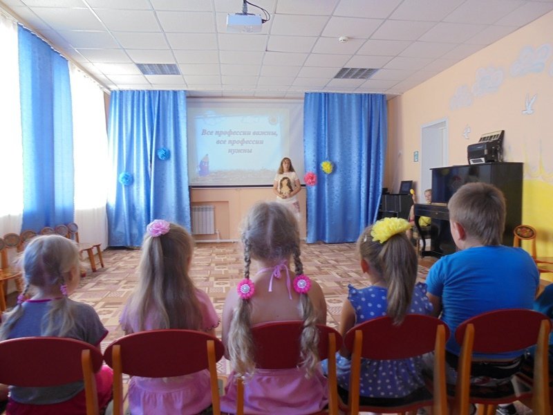 28 июня учитель – логопед Королёва Оксана Валерьевна провела в средней группе беседу и показала презентацию на тему: «Все профессии важны, все профессии нужны». Раскрасили картинки по данной тематике. Поиграли в игру – «Собери картинку», провели интервью – «Кем я хочу стать, когда вырасту».