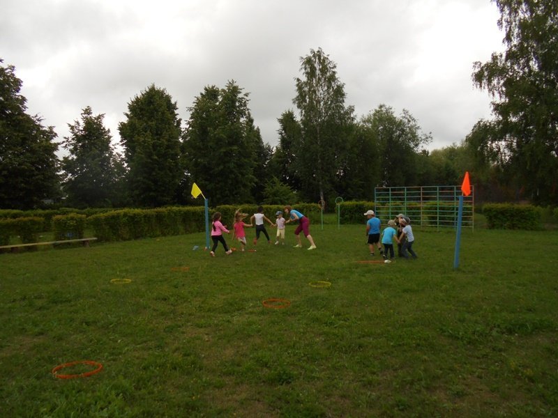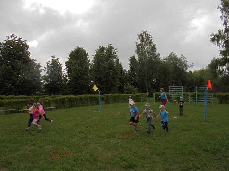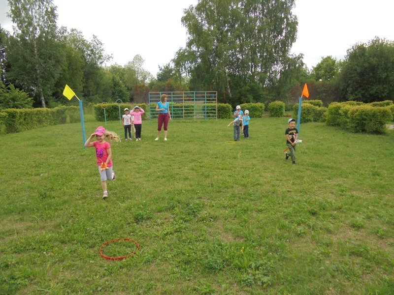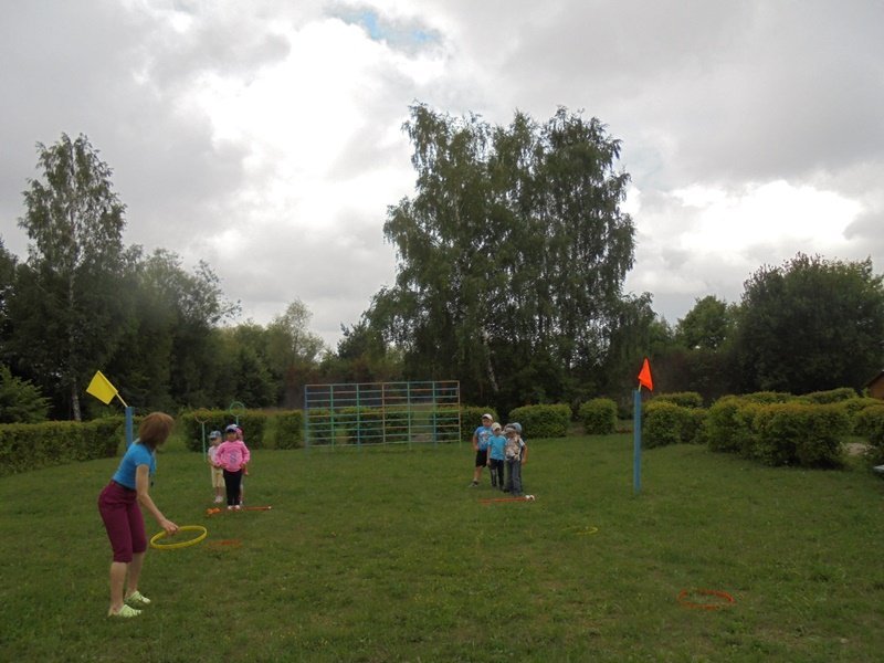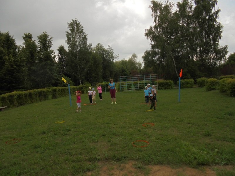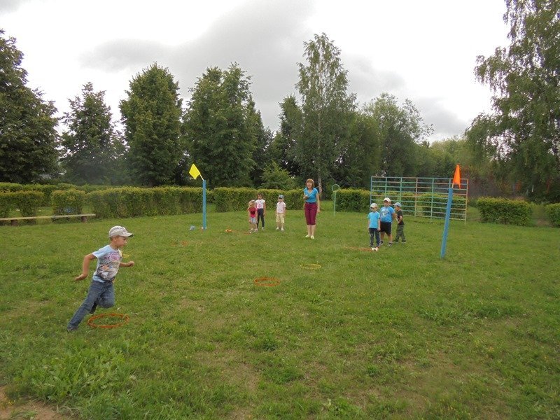 17 июля несмотря на хмурую погоду дети средней группы и воспитатель Горюнова Ольга Ивановна провели «Весёлые старты».