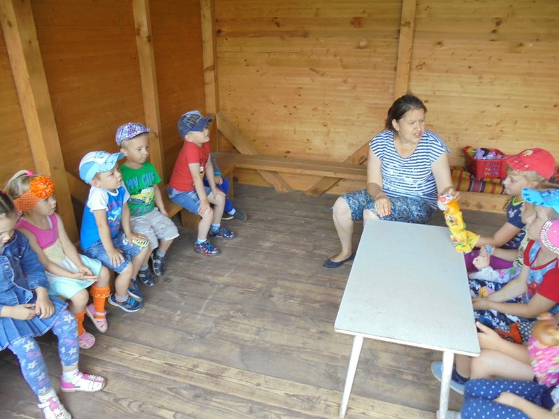 27 июля дети средней группы вместе с воспитателем Золотарёвой Ольгой Васильевной показали малышам русскую народную сказку «Колобок».