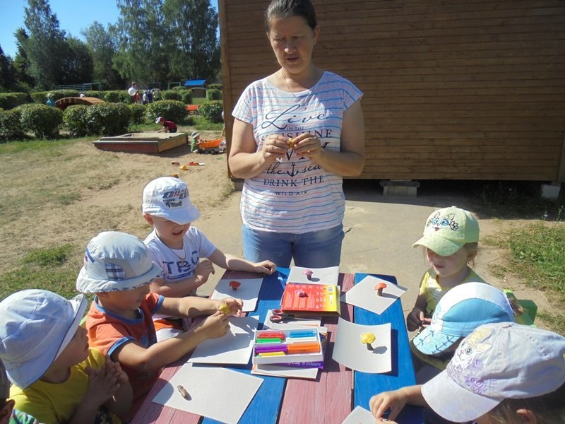 9 августа воспитатель Золотарёва Ольга Васильевна вместе с детьми попали на грибную полянку которую сами же и слепили.