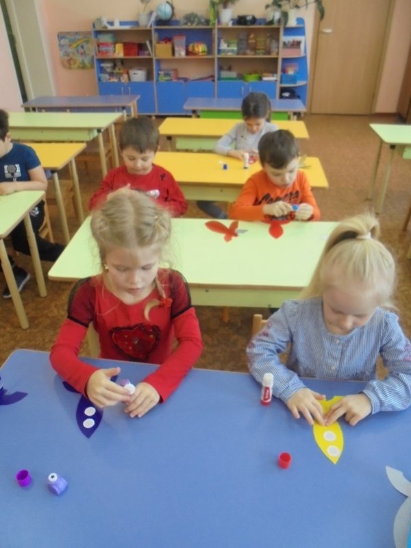 20 февраля воспитатель Петренко Татьяна Сергеевна вместе с ребятами старшей группы клеили подарки – ракеты для своих пап.