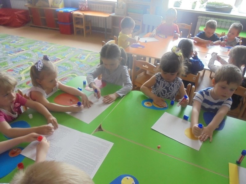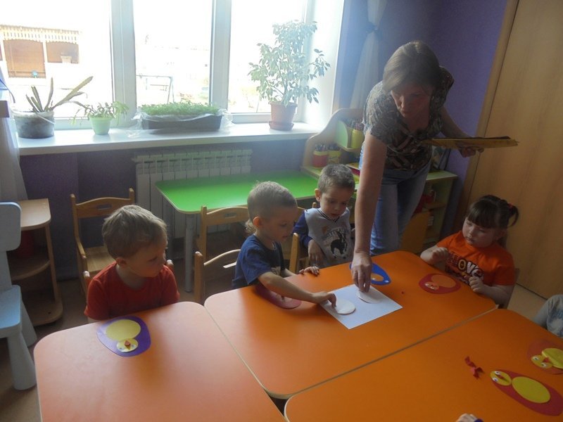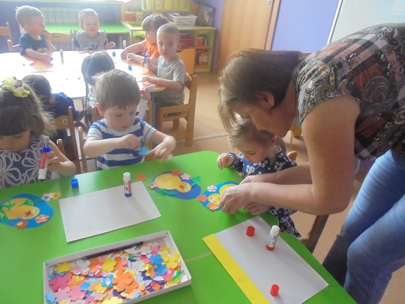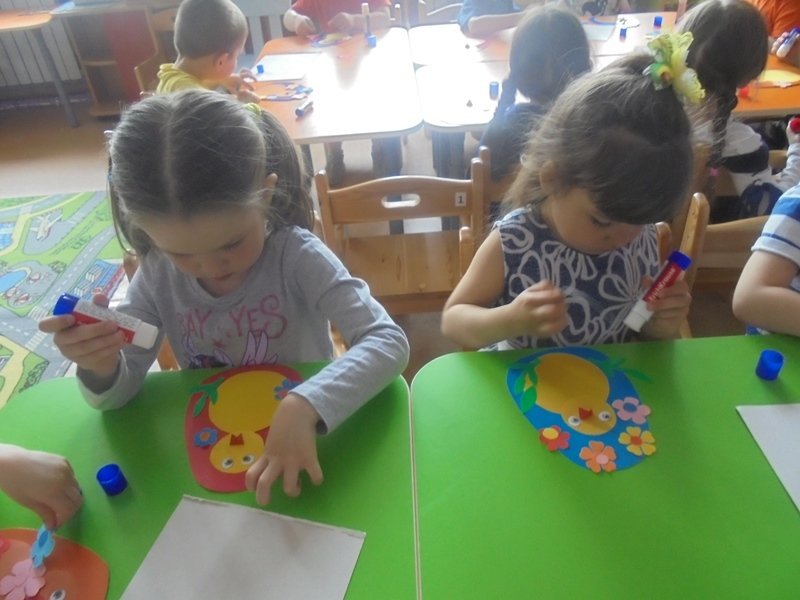 23 апреля дети второй младшей группы вместе с воспитателем Калугиной Ларисой Леонидовной клеили пасхального цыплёнка.