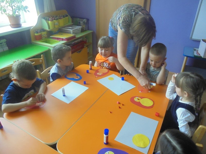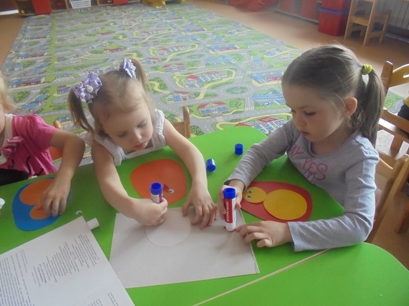Продолжать развивать умение ребят пользоваться клеем карандашом, а также правильно подбирать части аппликации, приклеивать на нужное место, пользуясь образцом воспитателя.