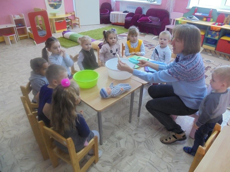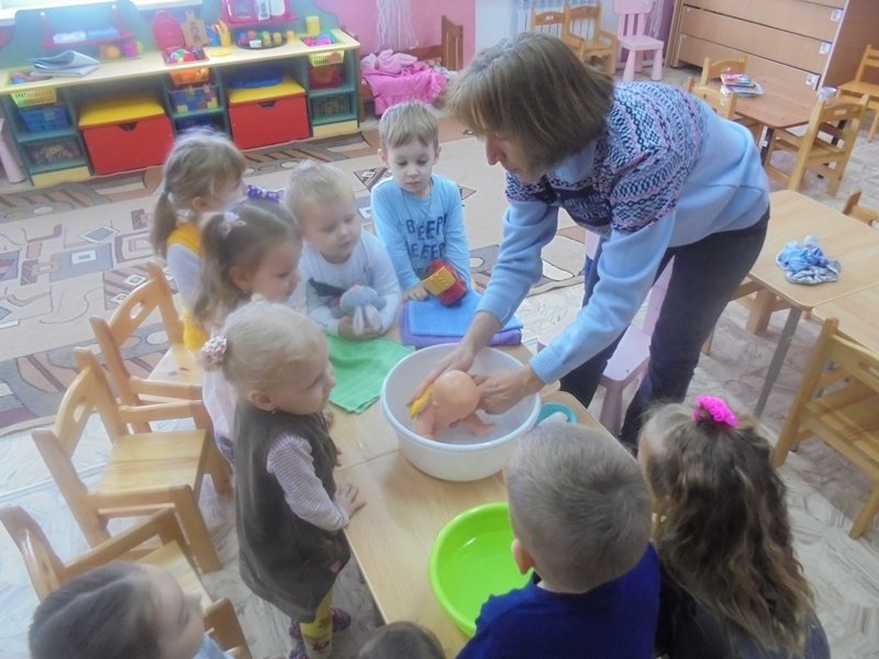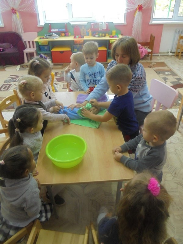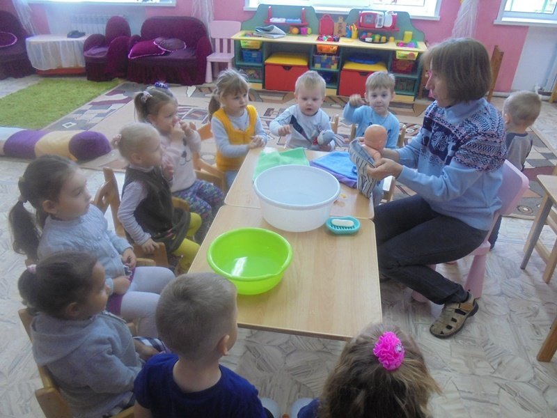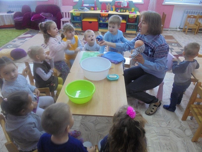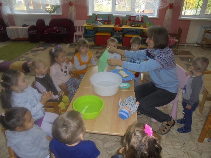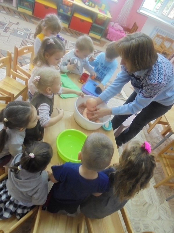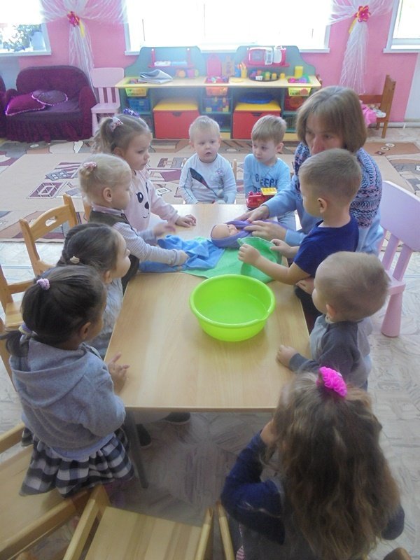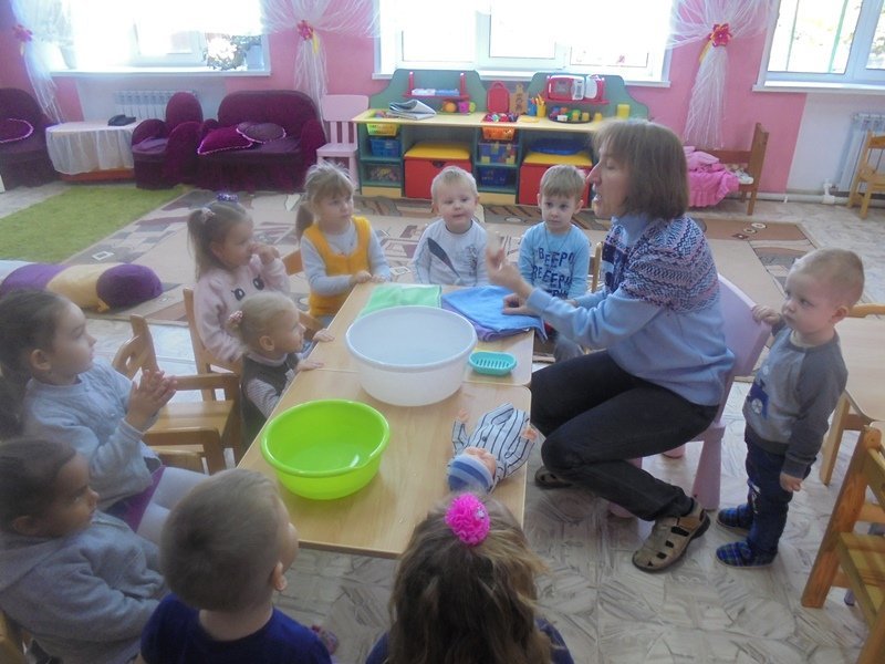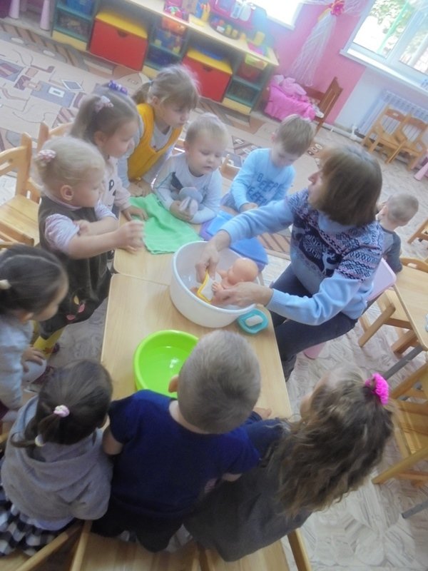 23 сентября воспитатель Горюнова Ольга Ивановна провела с малышами первой младшей группы весёлый досуг «Купание куклы Кати»