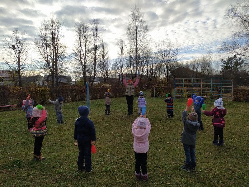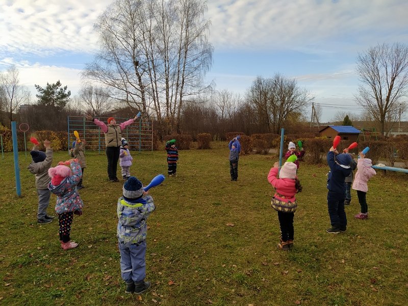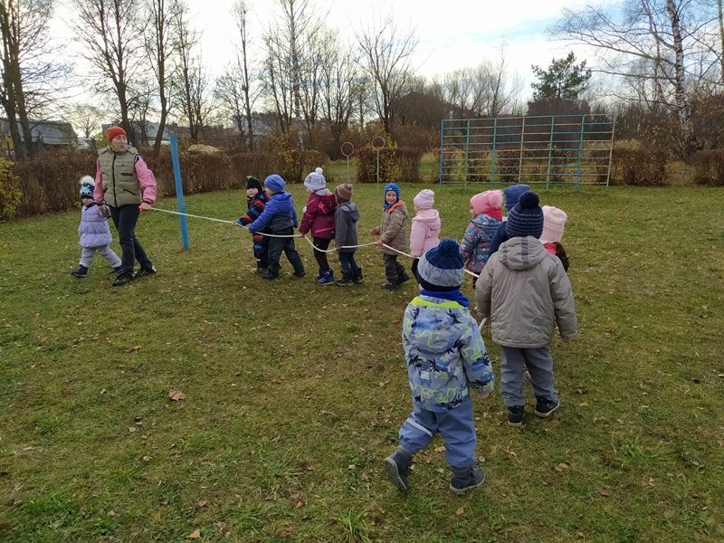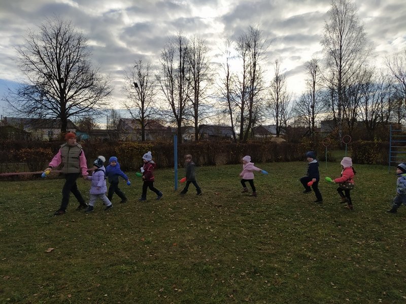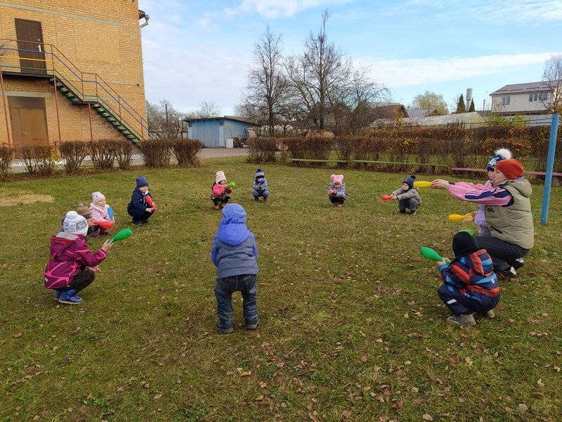 18 ноября воспитатель Горюнова Ольга Ивановна на спортивной площадке провела во второй младшей группе спортивное развлечение "Осенние забавы".