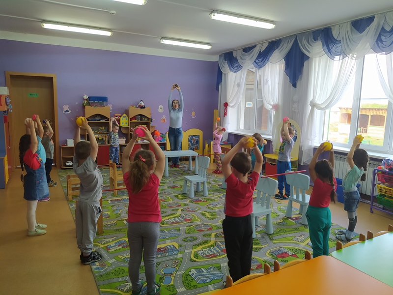 19 мая воспитатель Горюнова Ольга Ивановна провела во второй младшей группе физкультурный досуг "Забавные мячики".