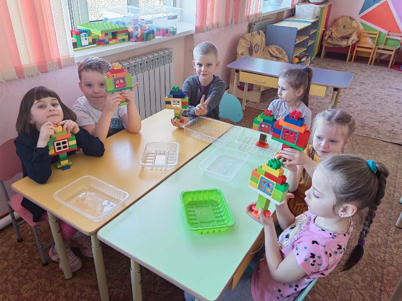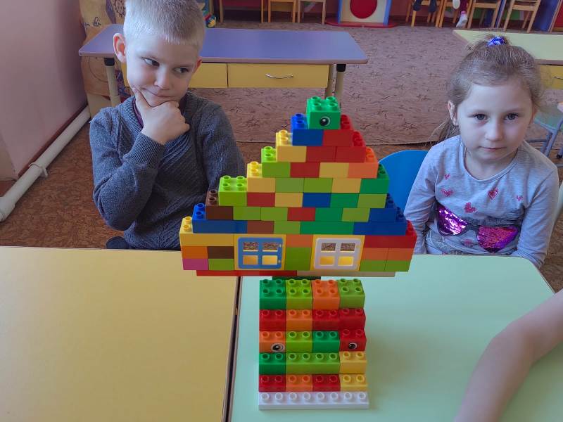 25 марта воспитатель Нукрева Александра Геннадьевна вместе с воспитанниками старшей группы мастерили из LEGO – избушку.