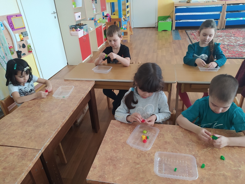 29 марта воспитанники средней группы вместе с воспитателем Горюновой Ольгой Ивановной собирали из LEGO – яблоко.