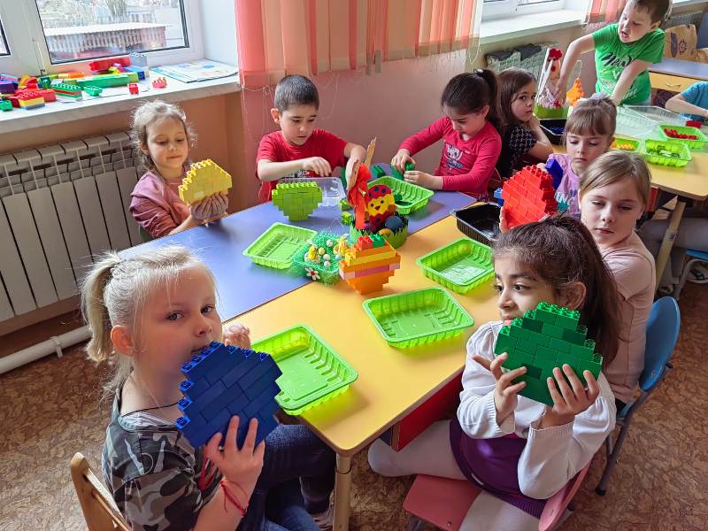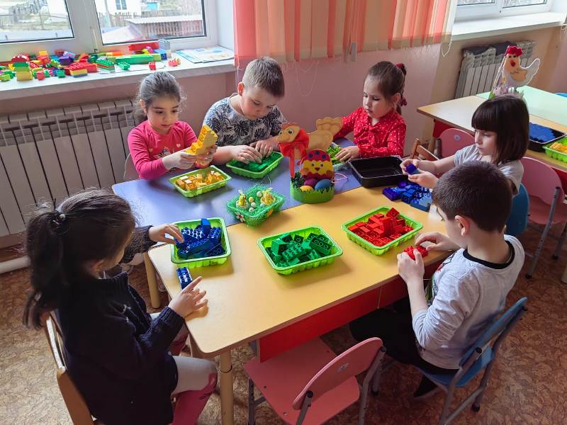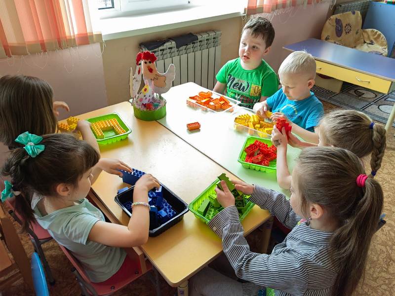 21 апреля воспитатель Нукрева Александра Геннадьевна вместе с воспитанниками старшей группы собирали из LEGO – яйцо.