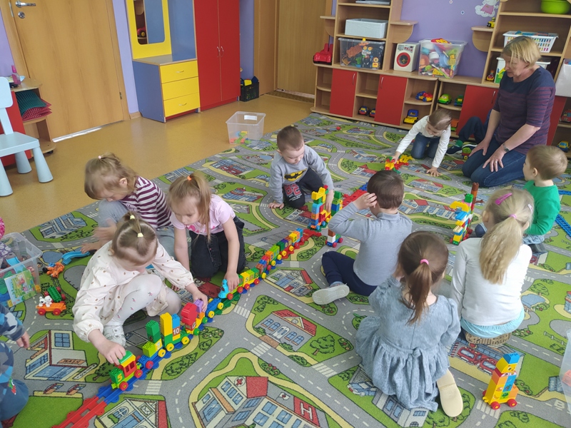 12 мая воспитатель Калугина Лариса Леонидовна вместе с малышами второй младшей группы мастерили ЛЕГО – поезда.